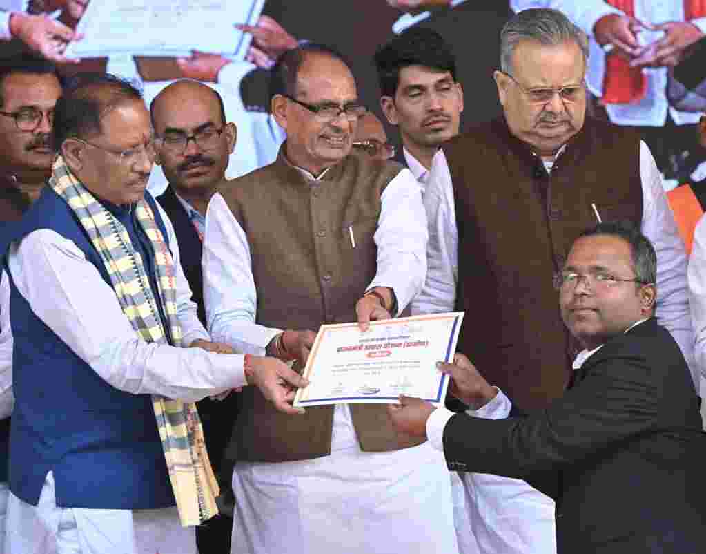 रायपुर। केन्द्रीय कृषि पंचायत एवं ग्रामीण विकास मंत्री श्री शिवराज सिंह चौहान ने कहा है कि केन्द्र में प्रधानमंत्री श्री नरेन्द्र मोदी और राज्य में श्री विष्णु देव साय की डबल इंजन सरकार प्रदेश की तस्वीर और तकदीर बदलने के लिए पूरी निष्ठा से कार्य कर रही है। वे आज दुर्ग जिले के नगपुरा में आयोजित मोर आवास मोर अधिकार कार्यक्रम को सम्बोधित कर रहे थे। इस अवसर पर उन्होंने प्रधानमंत्री आवास योजना के हितग्राहियों के पैर पखार कर उनका अभिनंदन किया। केन्द्रीय मंत्री श्री चौहान ने छत्तीसगढ़ में प्रधानमंत्री आवास योजना के तहत 3 लाख 3 हजार 384 नए आवासों की घोषणा की।
