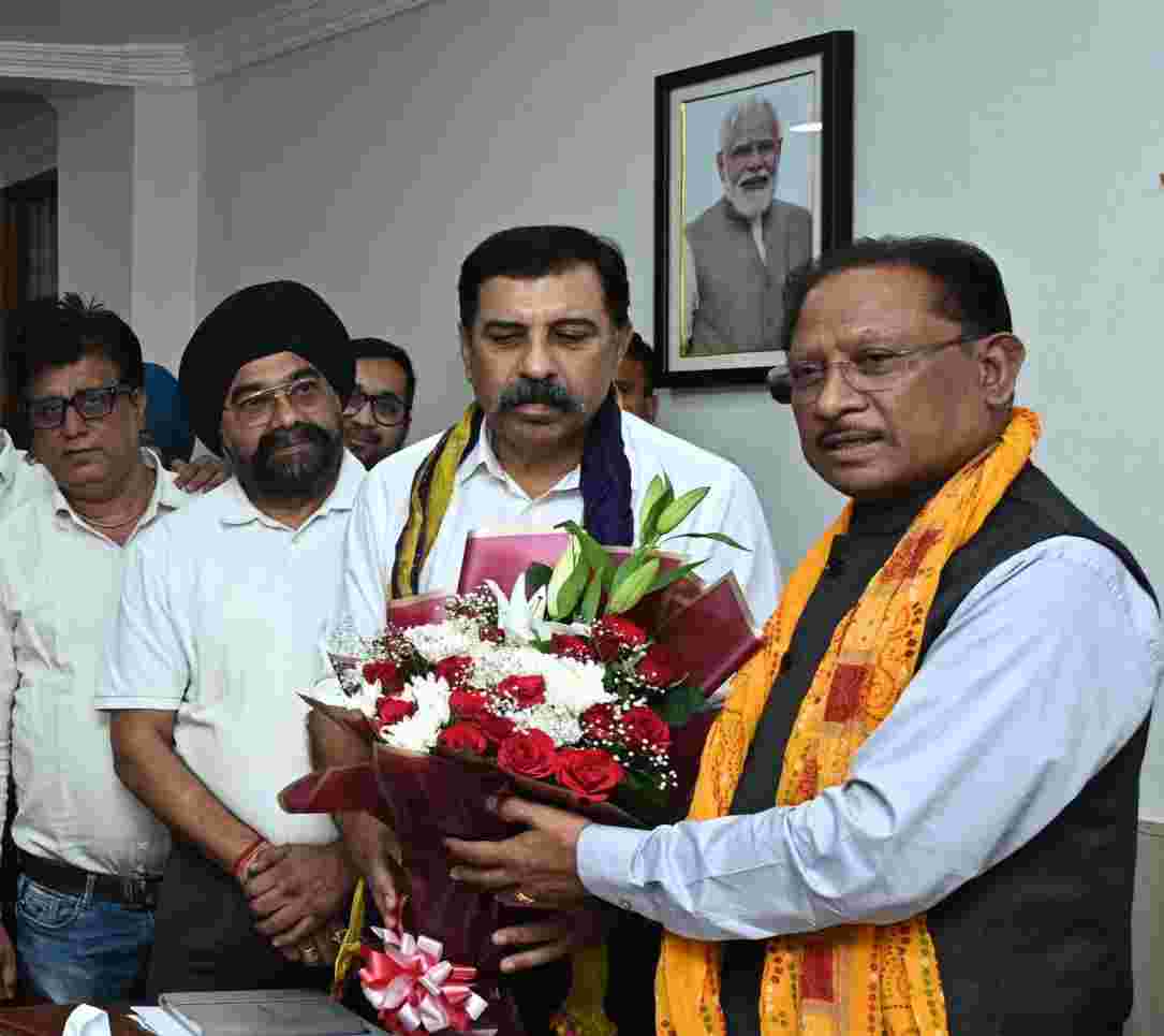 रायपुर। बजट में ई – वे बिल की लिमिट बढ़ाने और वेट में छूट की घोषणा पर छत्तीसगढ़ चैंबर ऑफ कॉमर्स के प्रतिनिधि मंडल ने अध्यक्ष श्री अमर परवानी के नेतृत्व में आज शाम मुख्यमंत्री श्री विष्णुदेव साय से उनके निवास कार्यालय में मुलाकात कर उनके प्रति आभार प्रकट किया।