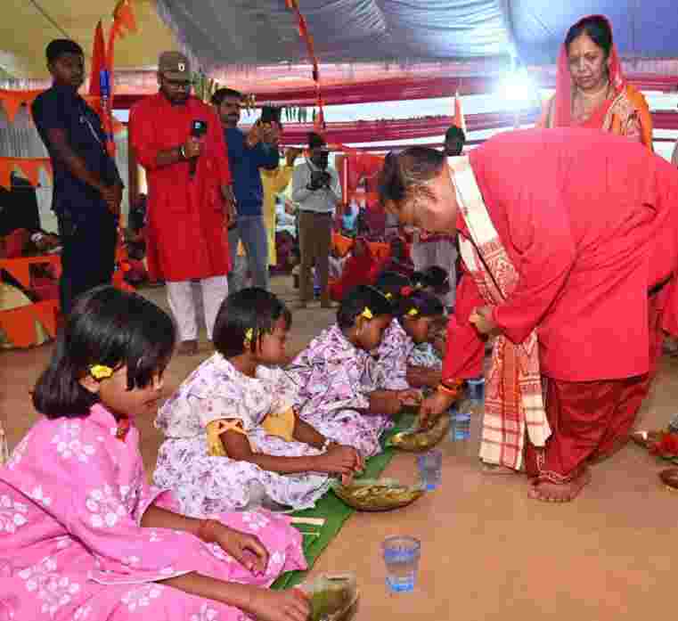 मुख्यमंत्री श्री विष्णु देव साय और श्रीमती कौशल्या साय ने इस अवसर पर पारंपरिक श्रद्धा और स्नेहभाव के साथ नन्हीं कन्याओं को आदरपूर्वक भोजन कराकर उनका आशीर्वाद प्राप्त किया।
