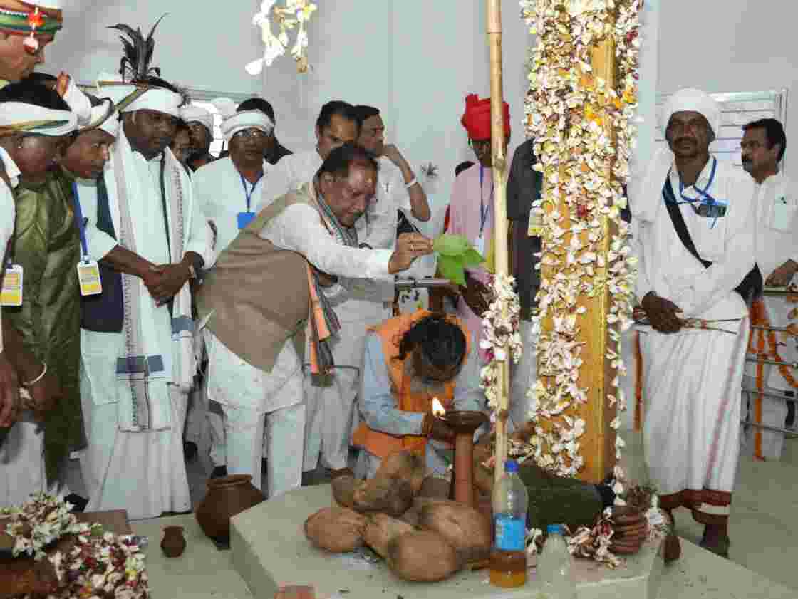 रायपुर। मुख्यमंत्री विष्णुदेव साय आज कांकेर के ग्राम भिरावाही में गोंडवाना समाज द्वारा आयोजित मरका पंडुम (चैतरई महापर्व) के समापन समारोह में शामिल हुए। उन्होंने गोंडवाना समाज के आराध्य बूढ़ादेव और आंगा देव की पूजा-अर्चना कर तेंदू, चार, चिरौंजी, महुआ और आम फल अर्पित किया और प्रदेशवासियों की खुशहाली के लिए कामना की।