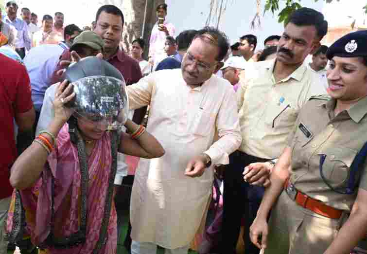 रायपुर। सुशासन तिहार के दौरान शासकीय योजनाओं के क्रियान्वयन के औचक निरीक्षण हेतु बलौदाबाजार-भाटापारा जिले के बलदाकछार पहुँचे मुख्यमंत्री श्री विष्णु देव साय ने गाँव के दो युवाओं को अपने हाथों से हेलमेट पहनाकर सड़क सुरक्षा का संदेश दिया। उन्होंने बरगद के नीचे लगी चौपाल में बलदाकछार के 24 वर्षीय श्री धनंजय पटेल और 28 वर्षीय श्रीमती हेमलता चंद्राकर को हेलमेट पहनाया। इस अवसर पर मुख्यमंत्री श्री साय ने शिविर में उपस्थित सभी लोगों से अपील की कि वे दोपहिया वाहन चलाते समय अनिवार्य रूप से हेलमेट पहनें। उन्होंने कहा कि प्रत्येक व्यक्ति की जान अनमोल है। सड़क पर वाहन चलाते समय दुर्घटना की स्थिति में हेलमेट सिर में गंभीर चोटों से बचाता है। उन्होंने कहा कि हेलमेट लगाना न केवल यातायात नियमों का पालन है, बल्कि स्वयं की सुरक्षा के लिए भी अत्यंत आवश्यक है।