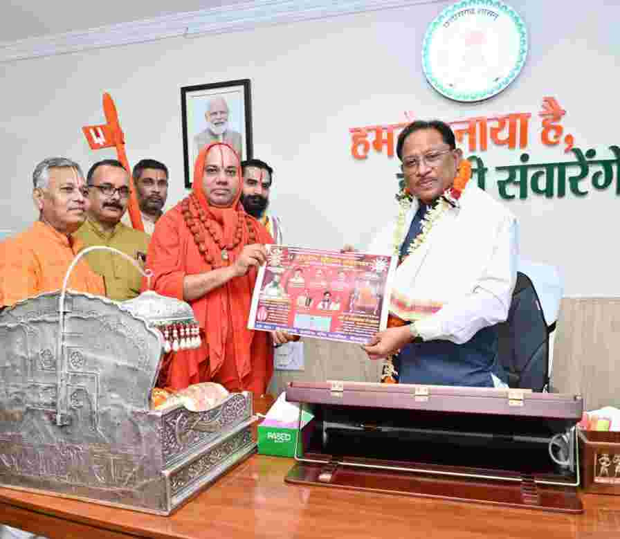 मुख्यमंत्री श्री विष्णु देव साय ने आमंत्रण के लिए स्वामी श्री श्री वल्लभाचार्य जी महाराज के प्रति हार्दिक आभार व्यक्त किया।
