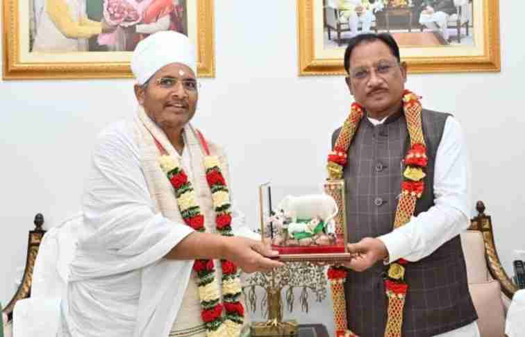 रायपुर। मुख्यमंत्री विष्णु देव साय से आज राजधानी रायपुर स्थित मुख्यमंत्री निवास में परम पूज्य संत श्री असंग देव जी ने सौजन्य भेंट की। मुख्यमंत्री श्री साय ने शॉल और श्रीफल भेंट कर पूज्य संत श्री असंग देव जी का सम्मान किया तथा प्रदेश की सुख-समृद्धि का आशीर्वाद प्राप्त किया। संत श्री असंग देव जी ने मुख्यमंत्री को गौमाता की प्रतिमा भेंट की। इस अवसर पर मुख्यमंत्री श्री विष्णु देव साय और पूज्य संत श्री असंग देव जी के मध्य विभिन्न आध्यात्मिक विषयों पर सार्थक चर्चा हुई।