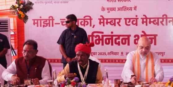 रायपुर। केन्द्रीय गृहमंत्री अमित शाह एवं मुख्यमंत्री श्री विष्णु देव साय आज जगदलपुर के लालबाग मैदान में बस्तर दशहरा पर्व से जुड़े मांझी-चालकी, मेम्बर एवं मेम्बरीन के सम्मान में आयोजित अभिनंदन भोज में शामिल हुए। केंद्रीय गृह मंत्री श्री अमित शाह ने अभिनंदन भोज में परोसे गए आदिवासी समाज के पारम्परिक व्यंजनों की सराहना करते हुए कहा कि ये पारम्परिक व्यंजन बस्तर की संस्कृति, परंपरा और आदिवासी जीवन मूल्यों का अनूठा स्वाद प्रस्तुत करते हैं।