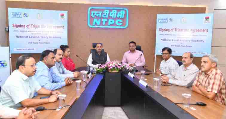 17 अक्टूबर, 2025 को एनटीपीसी नवा रायपुर कार्यालय में आयोजित एक कार्यक्रम में, एनटीपीसी की ओर से श्री दिवाकर कौशिक, क्षेत्रीय कार्यकारी निदेशक (डब्ल्यूआर-II) और सीईओ (एनएसपीसीएल); श्री चंदन कुमार (आईएएस), सीईओ, नया रायपुर अटल नगर विकास प्राधिकरण (एनआरएएनवीपी) और श्रीमती तनुजा सलाम (आईएएस), निदेशक, खेल और युवा कल्याण विभाग, छत्तीसगढ़ सरकार ने एनटीपीसी और राज्य सरकार के वरिष्ठ अधिकारियों की उपस्थिति में राष्ट्रीय स्तर की तीरंदाजी अकादमी की स्थापना के लिए त्रिपक्षीय समझौते पर हस्ताक्षर किए।