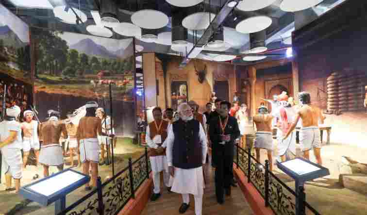 प्रधानमंत्री श्री नरेंद्र मोदी को प्रमुख सचिव श्री सोनमणि बोरा ने संग्रहालय की विशेषताओं की जानकारी दी। श्री बोरा ने बताया कि शहीद वीर नारायण सिंह आदिवासी स्वतंत्रता संग्राम सेनानी स्मारक सह संग्रहालय 50 करोड़ रुपए की लागत से तैयार किया गया है। यहां 14 गैलरियों में अंग्रेजी हुकूमत काल के जनजातीय स्वतंत्रता संग्राम सेनानियों की लगभग 650 मूर्तियाँ स्थापित की गई हैं। जनजातीय विद्रोहों को आसानी से समझाने के लिए डिजिटल माध्यमों की भी व्यवस्था की गई है।