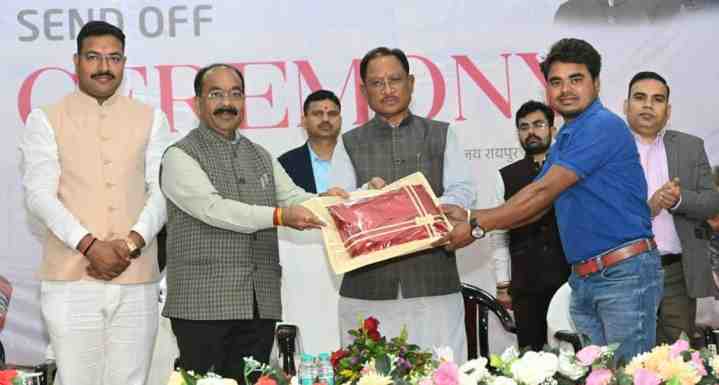 रायपुर। मुख्यमंत्री विष्णु देव साय ने कहा कि स्वामी विवेकानंद ने अल्पायु में ही संपूर्ण विश्व को भारत की सनातन संस्कृति, अध्यात्म और दर्शन से परिचित कराते हुए देश का सम्मान बढ़ाया था। मुख्यमंत्री श्री विष्णुदेव साय ने आज शाम राजधानी रायपुर स्थित मुख्यमंत्री निवास कार्यालय में आयोजित सेंड ऑफ सेरेमनी समारोह में युवाओं को संबोधित कर रहे थे। इस कार्यक्रम का आयोजन खेल एवं युवा कल्याण विभाग द्वारा किया गया।