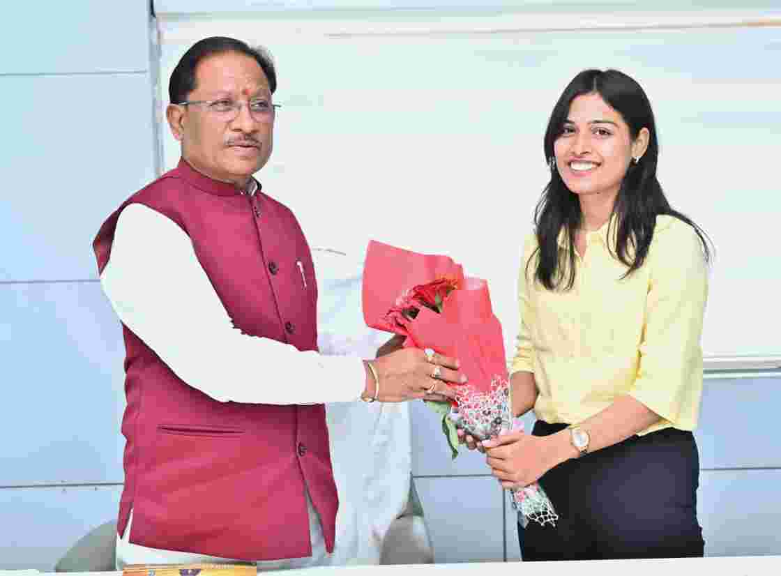 रायपुर। मुख्यमंत्री विष्णुदेव साय ने आज मंत्रालय महानदी भवन स्थित अपने कार्यालय में सीडीएस परीक्षा में ऑल इंडिया चौथा रैंक प्राप्त करने वाली मुंगेली की सुश्री सुप्रिया को सम्मानित किया। उन्होंने सुप्रिया और उनके परिजनों को पुष्पगुच्छ भेंटकर बधाई एवं शुभकामनाएं दी और मुँह मीठा कराया।