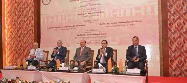 उपरोक्त समारोह में मुख्य अतिथि के रूप में उच्चतम न्यायालय के माननीय श्री न्यायमूर्ति पमिदिघनतम श्री नरसिम्हा तथा माननीय श्री न्यायमूर्ति प्रशांत कुमार मिश्रा एवं विशिष्ट अतिथि के रूप में एवं विशेष अतिथि के रूप में माननीय श्री न्यायमूर्ति रमेश सिन्हा मुख्य न्यायमूर्ति छत्तीसगढ़ उच्च न्यायालय की गरिमामयी उपस्थिति रही।