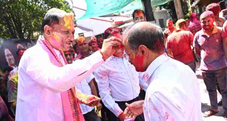 रायपुर। मुख्यमंत्री विष्णु देव साय ने आज राजधानी रायपुर स्थित मुख्यमंत्री निवास कार्यालय में अधिकारियों और कर्मचारियों के साथ पूरे उत्साह और उमंग के साथ होली का पर्व मनाया। पारंपरिक फाग गीतों और हर्षोल्लास के वातावरण में रंग और उल्लास से सराबोर इस अवसर पर सभी ने एक-दूसरे को गुलाल लगाकर होली की शुभकामनाएँ दीं। अधिकारियों और कर्मचारियों ने मुख्यमंत्री श्री साय को गुलाल लगाकर उन्हें बधाई दी, वहीं मुख्यमंत्री श्री साय ने भी आत्मीयता के साथ सभी को गुलाल लगाकर रंगोत्सव की शुभकामनाएँ दीं और स्नेह, विश्वास तथा आपसी भाईचारे का संदेश दिया।